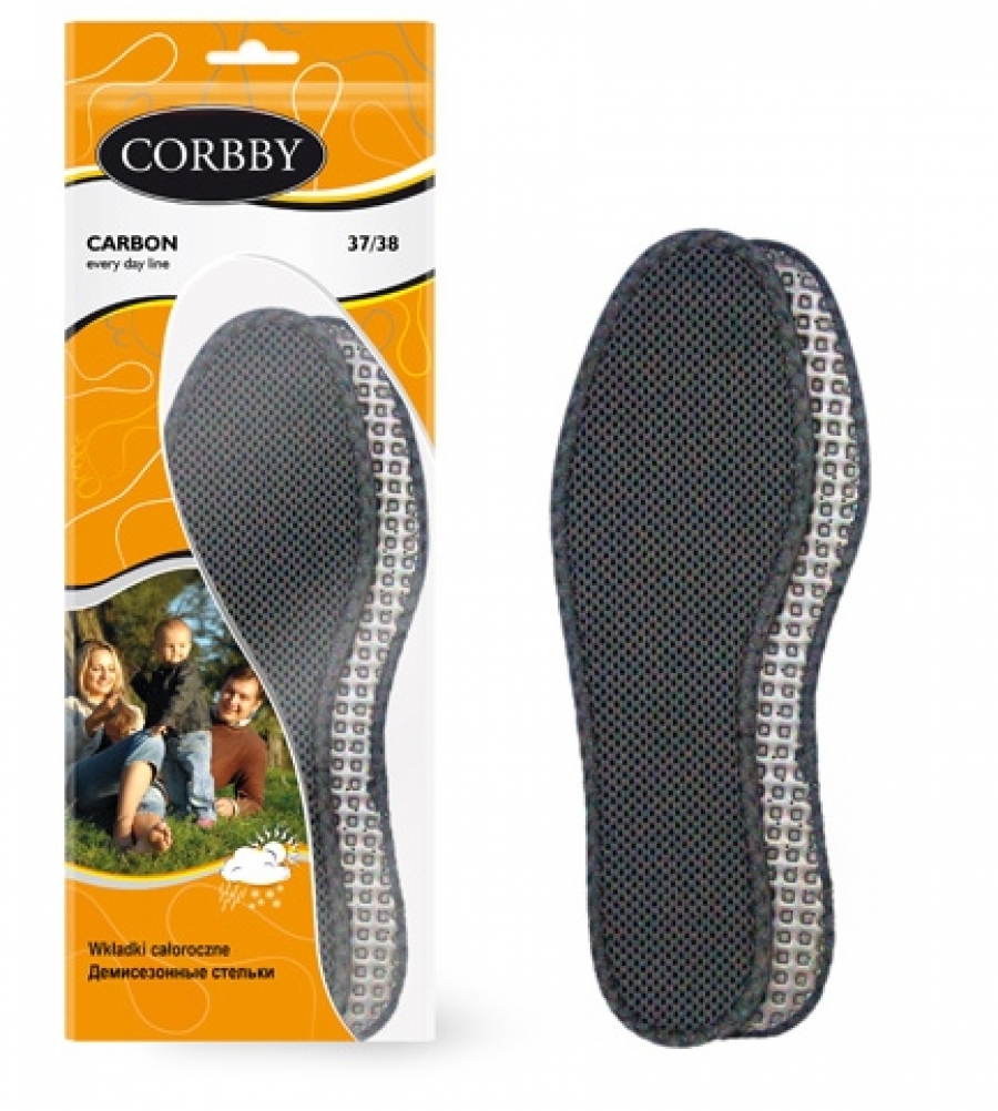 Wkładki CORBBY CARBON to całoroczne i antyzapachowe wkładki do butów, które skutecznie pochłaniają nieprzyjemne zapachy, poprawiają komfort chodzenia oraz redukują mikrowstrząsy. Dzięki zastosowaniu tkaniny dystansującej i pianki lateksowej z węglem aktywnym, wkładki zapewniają optymalną cyrkulację powietrza, ograniczają nadpotliwość i utrzymują stopy w suchości przez cały dzień.