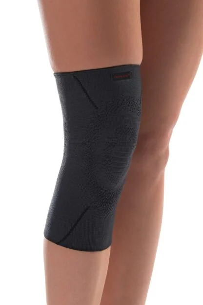 • Anatomiczna dzianina 3D: Zapewnia skuteczną i ukierunkowaną kompresję (20-36 mmHg, zgodnie z normami medycznymi) i stabilizację stawu.