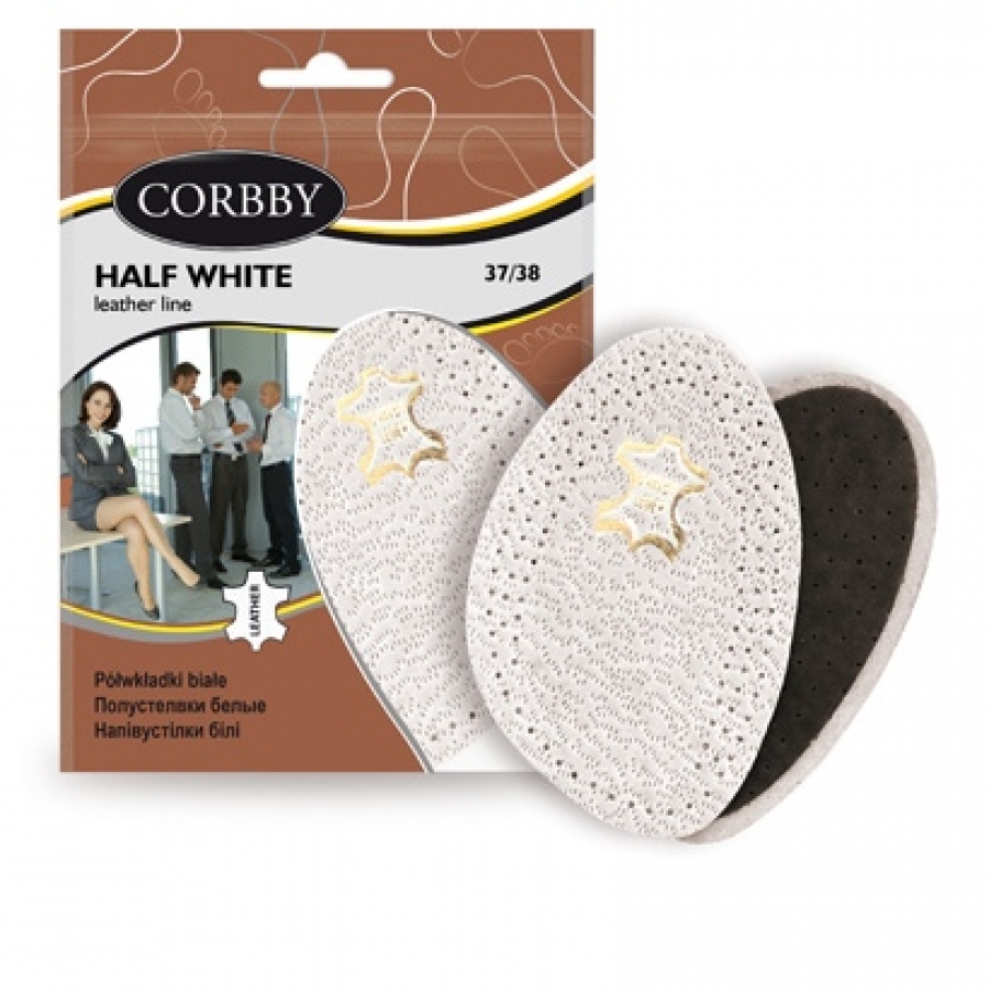 Corbby Półwkładki Skórzane HALF DROP – Dwuwarstwowe półwkładki z naturalnej skóry i lateksowej pianki, które poprawiają komfort chodzenia, dostosowując obuwie do niestandardowego rozmiaru stopy. Pomagają zredukować dyskomfort wynikający ze zbyt cienkiej podeszwy lub wrażliwej stopy.