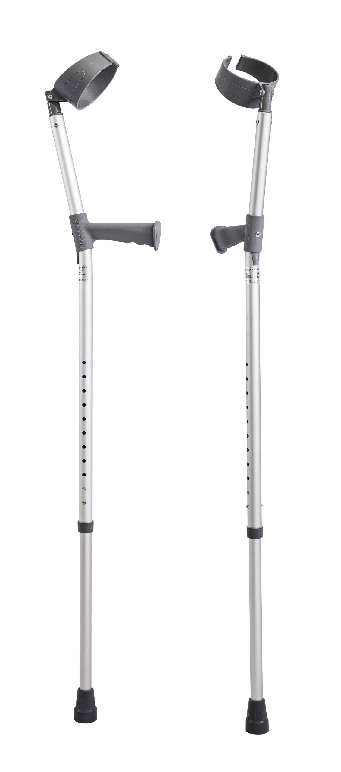 Bardzo wytrzymała kula łokciowa z uchylną obejmą oraz pojedynczą regulacją wysokości, przeznaczona do poruszania się, asekuracji podczas chodzenia i przenoszenia ciężaru ciała w przypadkach schorzeń urazowo – ortopedycznych kończyn dolnych.