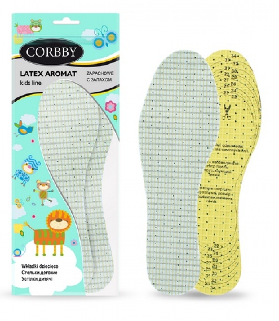 Wkładki Latex Aromat dla dzieci to dwuwarstwowe wkładki wykonane z miękkiej pianki lateksowej pokrytej bawełnianą tkaniną. Elastyczny lateks zapewnia amortyzację i zapobiega mikrowstrząsom, gwarantując wygodę i komfort stopom dziecka. Dodatkowo, wkładki nasączone cytrynowym aromatem skutecznie niwelują nieprzyjemne zapachy, zapewniając świeżość obuwia przez długi czas. Produkt jest szczególnie polecany przy dużym obciążeniu stóp, np. przy nadwadze, chodzeniu po twardych nawierzchniach, lub do butów z cienką podeszwą. Wkładki pasują do każdego rodzaju obuwia.