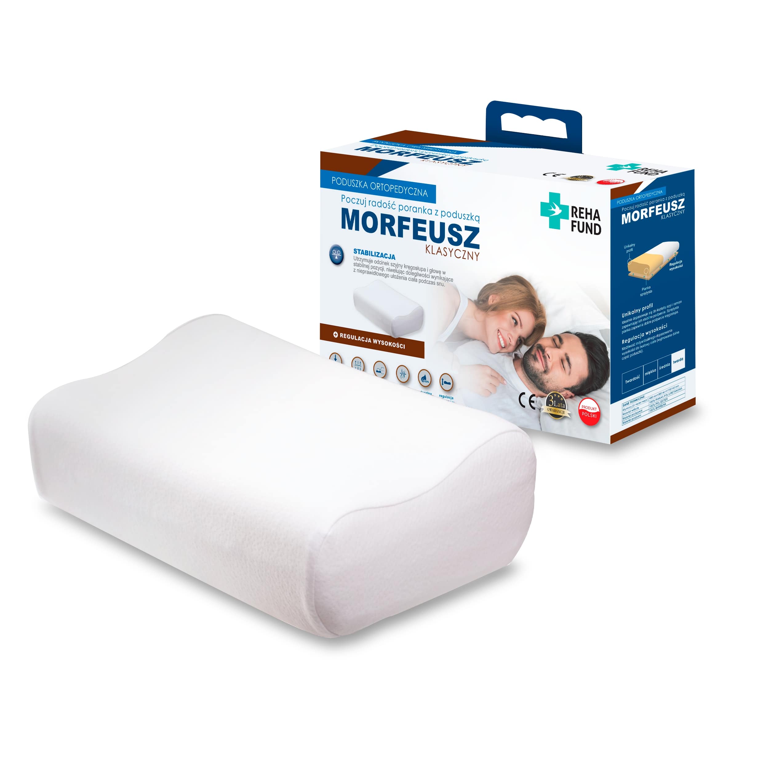 - poduszka ortopedyczna z pianki sprężystej, przeznaczona do podparcia i prawidłowej pozycji odcinka szyjnego kręgosłupa oraz głowy podczas snu.