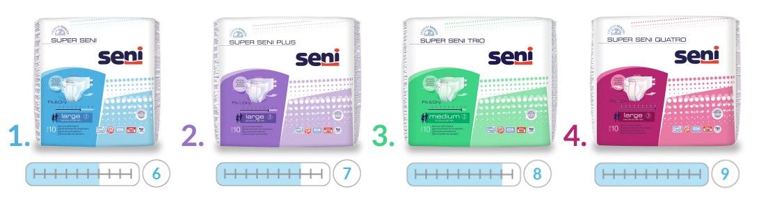 Super Seni Plus posiadają jedną z najszerszych rozmiarówek pieluchomajtek dla dorosłych