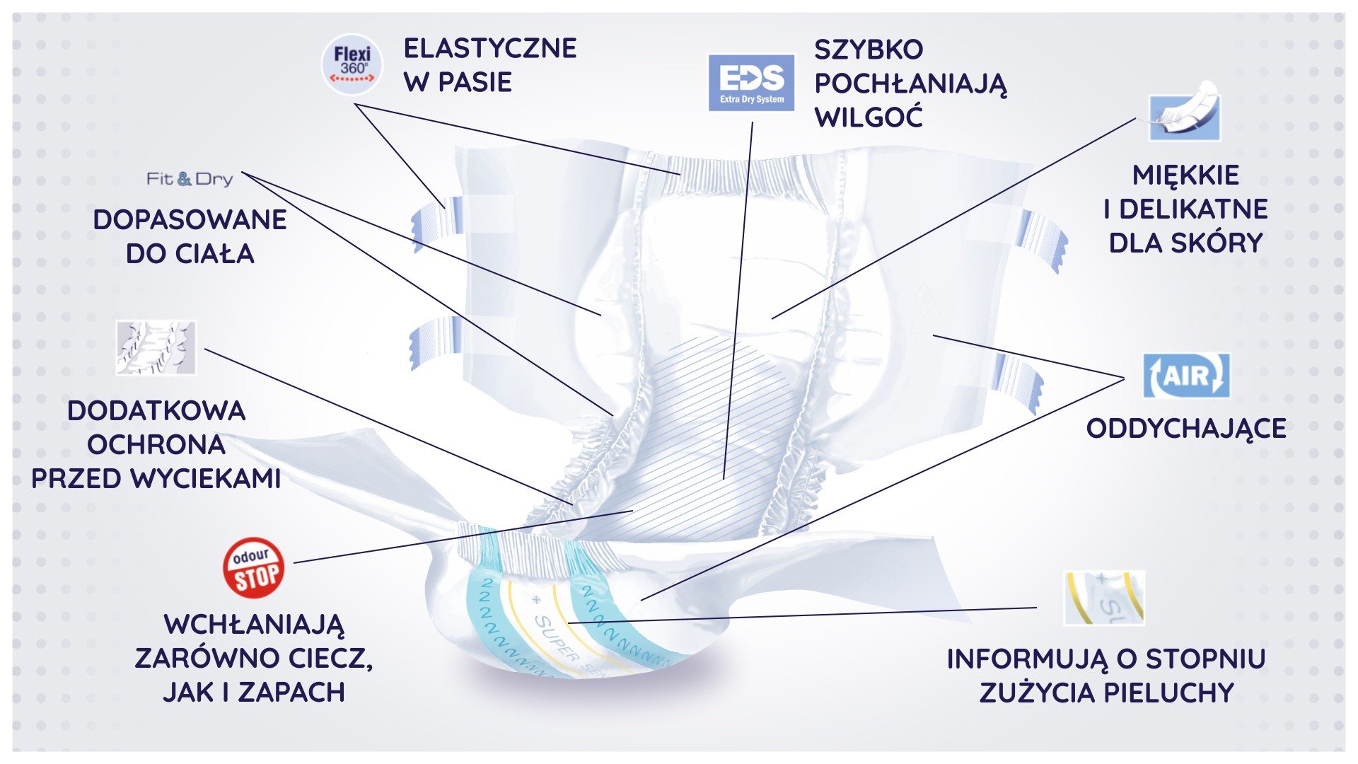 • Super Seni Plus to pieluchy chłonące nie tylko wilgoć, ale również przykre zapachy
