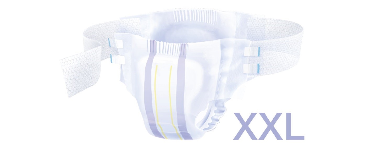 Rozmiar XXL Super Seni Plus przeznaczony jest dla osób o dużym obwodzie w pasie. Konstrukcja pieluchomajtek XXL, w odróżnieniu od pozostałych wariantów, posiada włókninowe pasy przedłużające skrzydła boczne. Dzięki nim pieluchomajtki nie zakrywają dużej powierzchni ciała. Przylepcorzepy w rozmiarze XXL znajdują się natomiast w przedniej części pieluchomajtek i mocuje się je do włókninowych pasów.