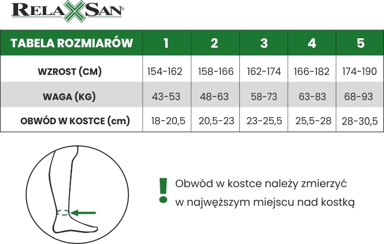 - należy dokonać pomiaru obwodu w kostce – najlepiej zrobić to rano kiedy nogi są wypoczęte.