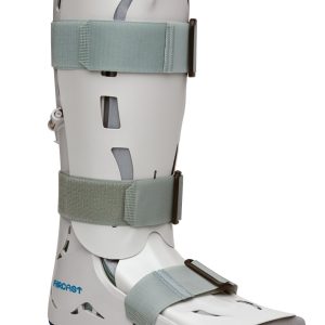 Post Operative Shoe – but wykonany z oddychającego materiału syntetycznego. Otwarta konstrukcja przedniej części buta pozwala na proste zakładanie, a także zapewnia dopływ powietrza do stopy. Sztywny zapiętek, prawidłowo utrzymuje stopę w pozycji. Zapinany jest na 3 rzepy. Do dwóch dolnych pasków dołączone są przedłużki z części chwytnej rzepa by móc dopasować tęgość buta i zapięcie do indywidualnych potrzeb użytkownika. But może być stosowany zarówno na lewą jak i prawą nogę, Specjalnie wyprofilowana podeszwa ustawiona pod kątem 8 stopni, pozwala na odciążenie przodostopia w trakcie chodzenia.