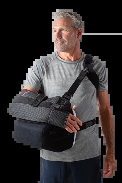 Ultrasling PRO AB to ortopedyczna orteza stawu barkowego od DonJoy, zaprojektowana do odwodzenia stawu barkowego z regulacją kąta zgięcia, idealna do stosowania w rehabilitacji pooperacyjnej i w przypadku urazów.